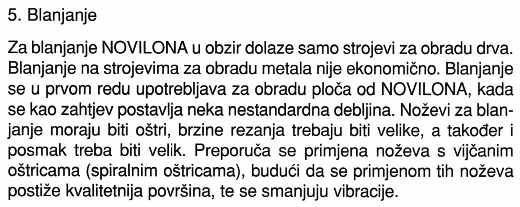 NOVILON lijevani poliamidi obrađuju se na uobičajenim strojevima za obradu metala ili drveta. Također se upotrebljavaju gotovo svi postupci obrade odvajanjem čestica: tokarenje, glodanje, bušenje, razvrtavanje, piljenje, rezanje navoja, blanjanje, prosijecanje itd.